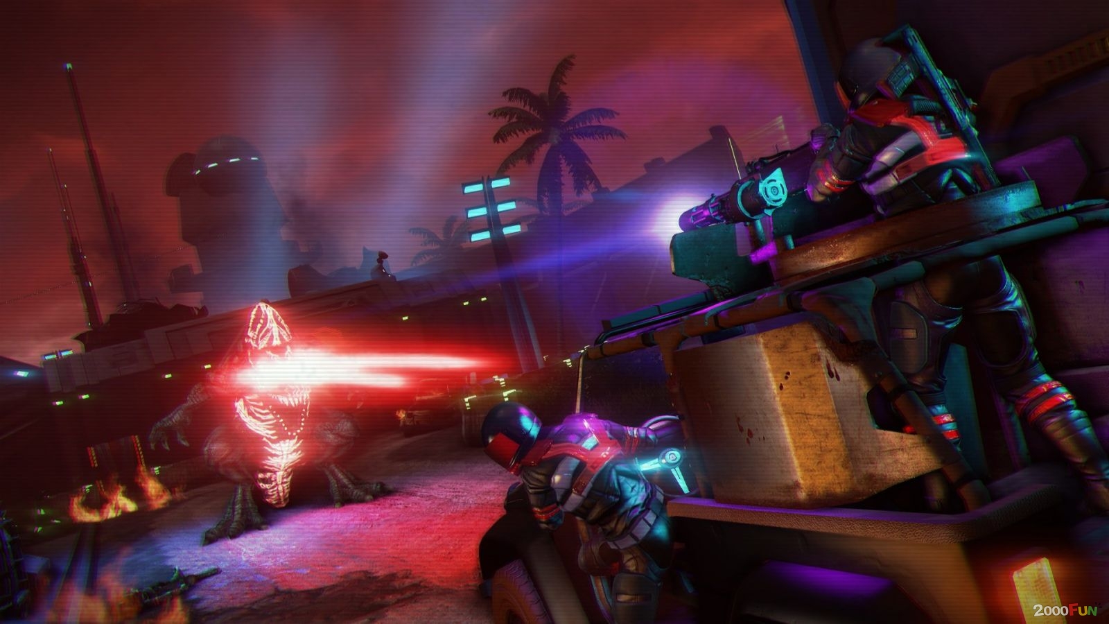還有,遊戲裡將會有從眼睛中發出雷射的強力血龍頭目級角色登場。準備好關掉你的錄放影機、插上大型機台的接頭,準備好重溫 80 年代復古風格的未來科幻世界!