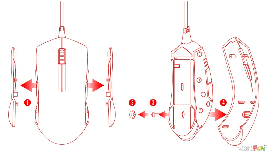 - 取下上蓋。重覆1-4相反步驟重組滑鼠。