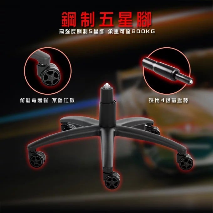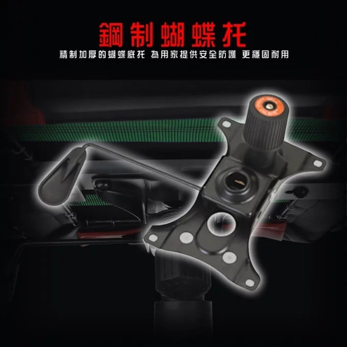 • 加闊金屬製五星底盤從而增加整體平衡性,特別針對椅背作180度平躺時的平衡