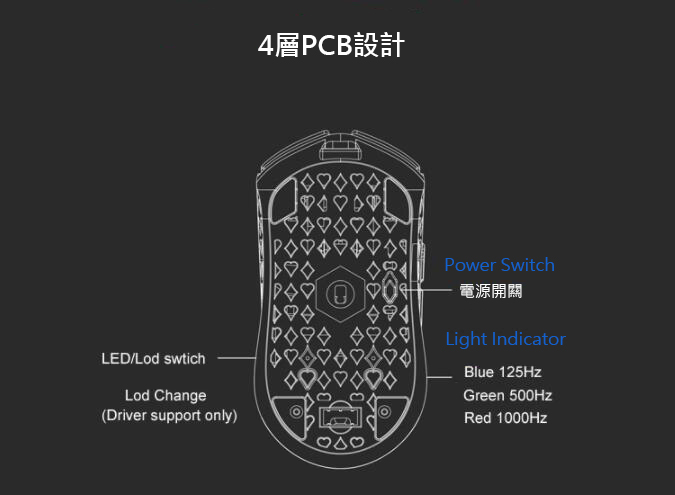 - 輪詢率: 125 Hz(8ms)/500Hz(2ms)/1000Hz(1ms)