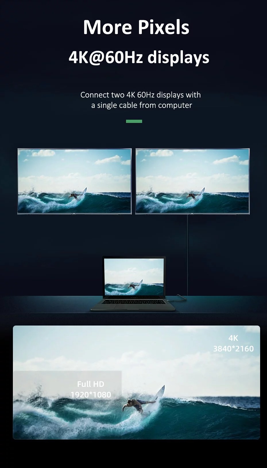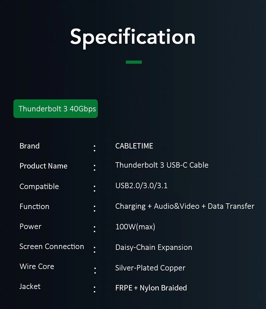 - Connector: Type-C Male Nickle Plated, With Chipset Cypress2103