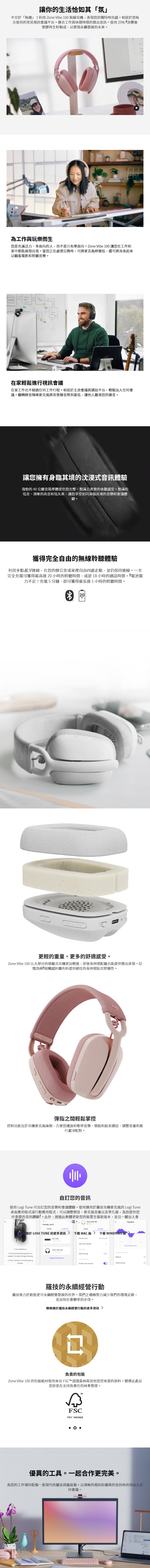藉由羅技 Zone Vibe 100 無線耳機,體驗令人沉浸其中的音訊。具有適合辦公室使用的專業性。以及在家使用的休閒功能。針對您的工作和玩樂需求而設計。