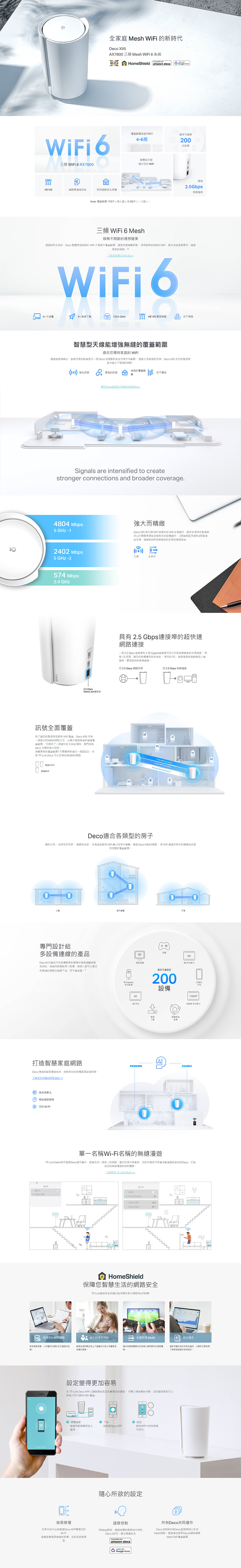 - 完整家庭WiFi6系統 –使用新一代WiFi,覆蓋範圍高達175坪,讓WiFi死角與延遲成為過去†