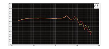 當耳機更靠近耳膜(黃色曲線),一方面低頻的音壓會增加,而高頻的刺耳感也會被緩和,令聲音效果更為理想。