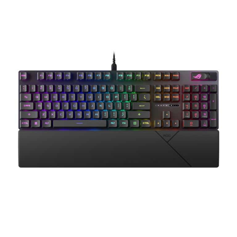 - 鍵盤提供耐用的 ROG PBT 二色成型鍵帽提供優異的手感以及抗打油。