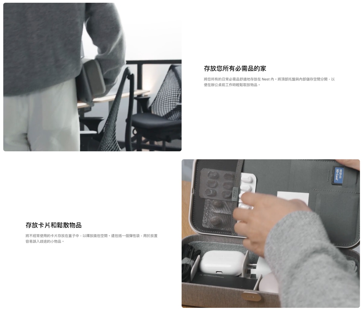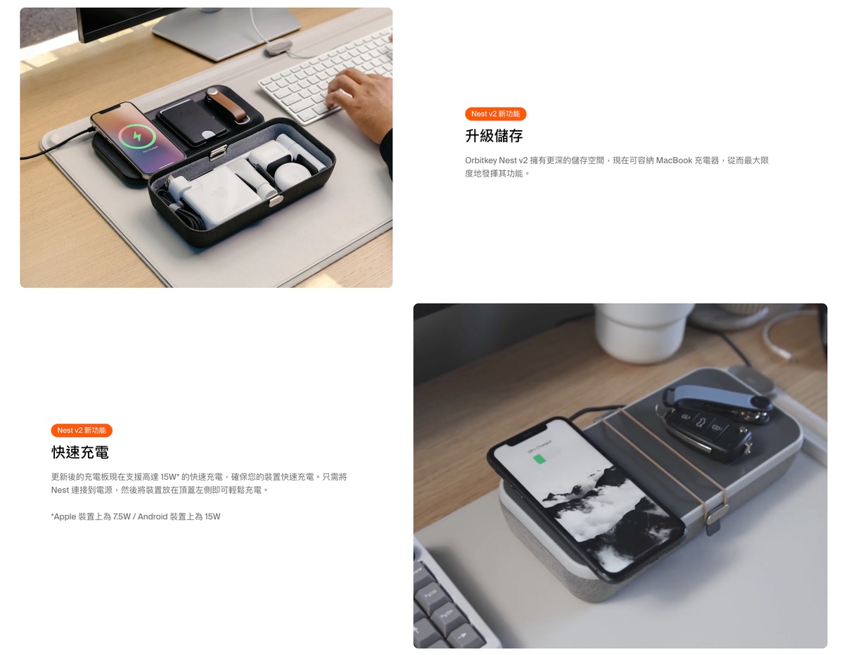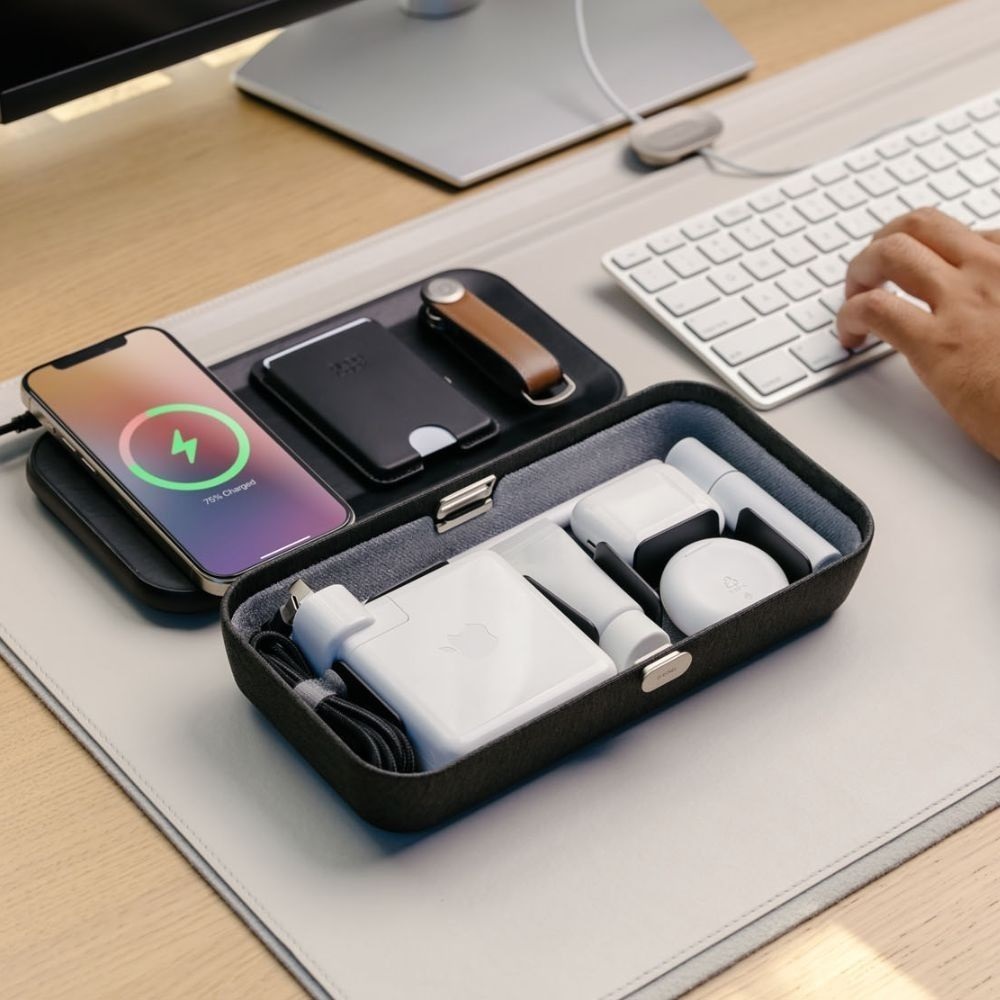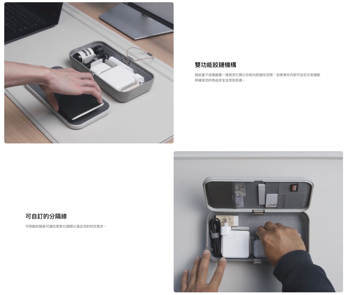 - 便攜式、可自訂的桌面整理器,現在具有更大的儲存空間和更快的無線充電速度。無論您身在何處,都可以讓您的必需品井井有條。