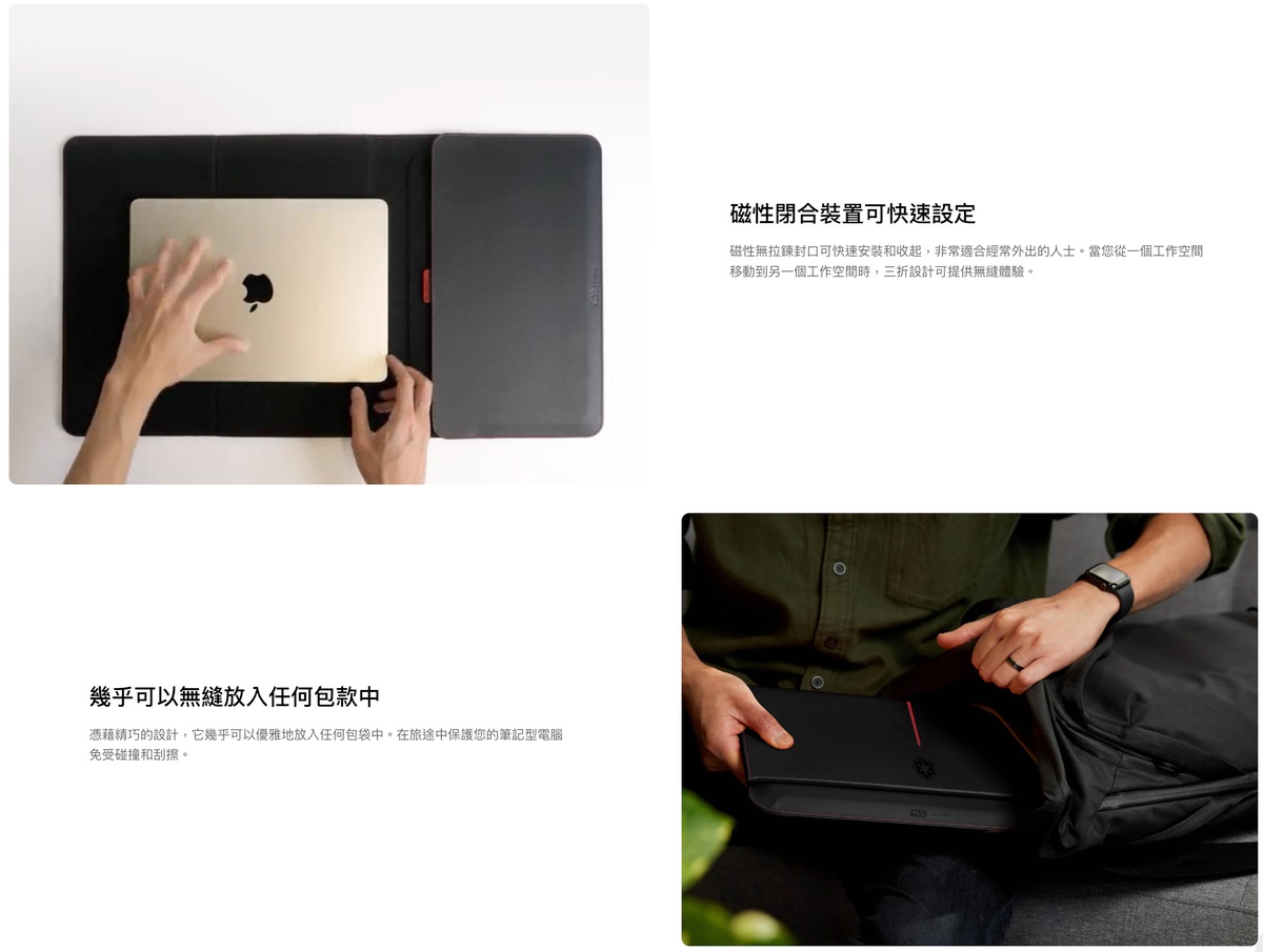 • 專為最大 14 吋或 16 吋筆記型電腦而設計,請查看我們的適配指南。