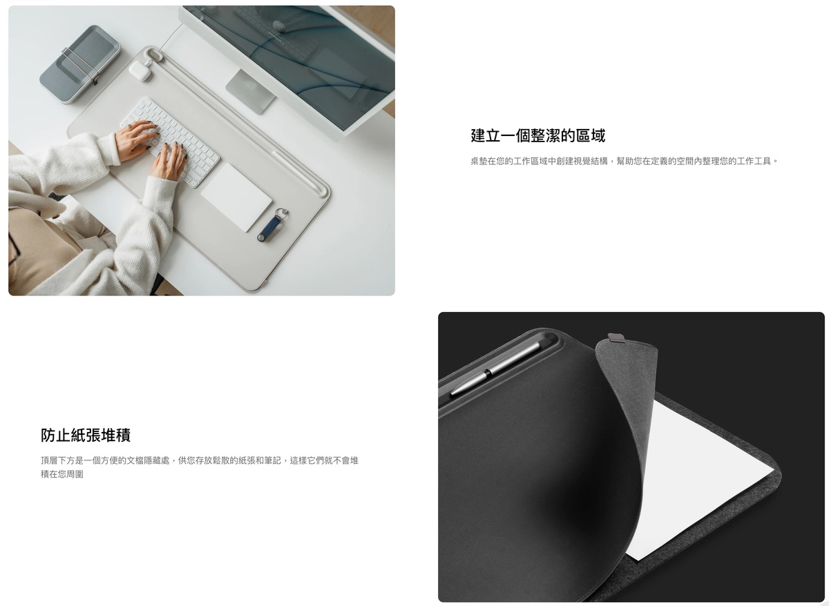 - ORBITKEY Desk Mat 辦公桌墊,創建一個整潔的工作區域。帶有內置組織功能的智能辦公桌墊可優化您的工作空間,下方是一個方便的文檔藏身處,可用於存儲鬆散的紙張和便箋,以免它們堆積在您的周圍。