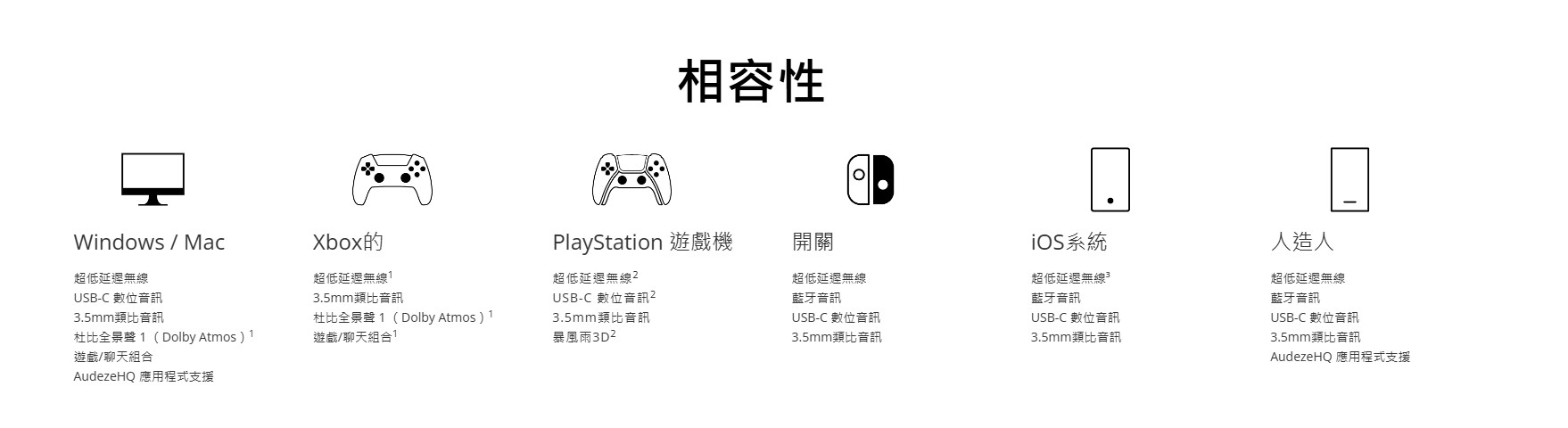 支援:多點、LE Audio、LC3、LC3plus、LDAC、AAC、SBC