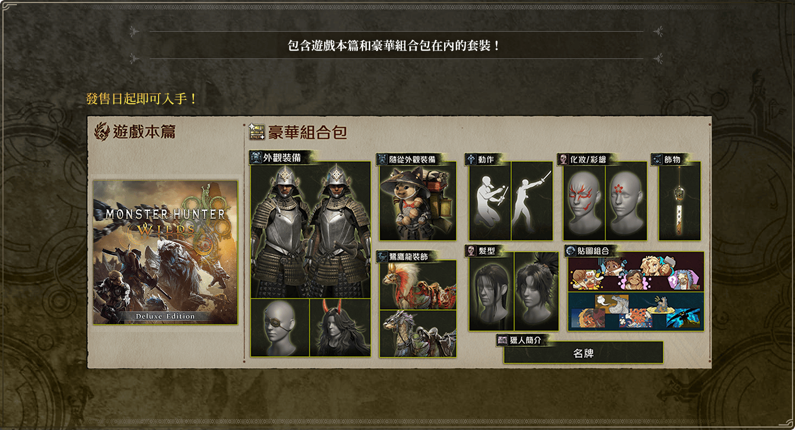 豐富多彩的武器和裝備,以及新的動作。細心觀察魔物的行動和環境,為狩獵帶來新的進化。新動作「集中模式」下,可對目標進行瞄準攻擊或防禦。透過瞄準魔物的要害,還可轉變為特殊的衍生並造成巨大的傷害。