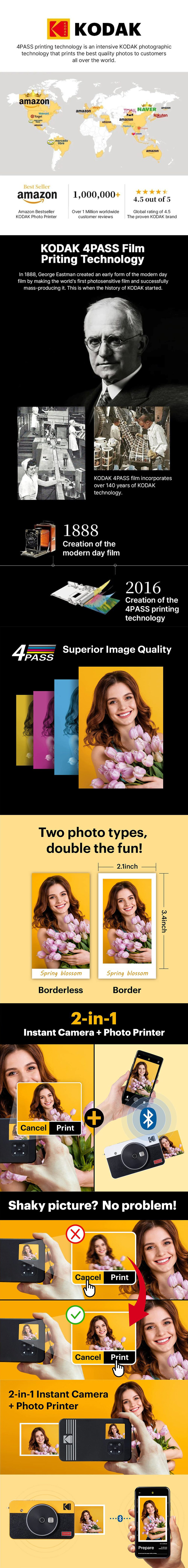 - 兩種相片類型:可使用Kodak MiniShot 2 復古相片打印機列印邊框和無邊界圖片。 有了這款即時相機,您可以用邊界類型寫下您的回憶,創造持久的回憶。 如果您想要讓相片更大尺寸,您可以列印無邊框類型。 號