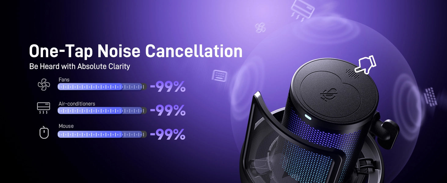 Instantly reduce background noise with a single tap and enjoy crystal-clear, high-fidelity audio for gaming, streaming, and recording.