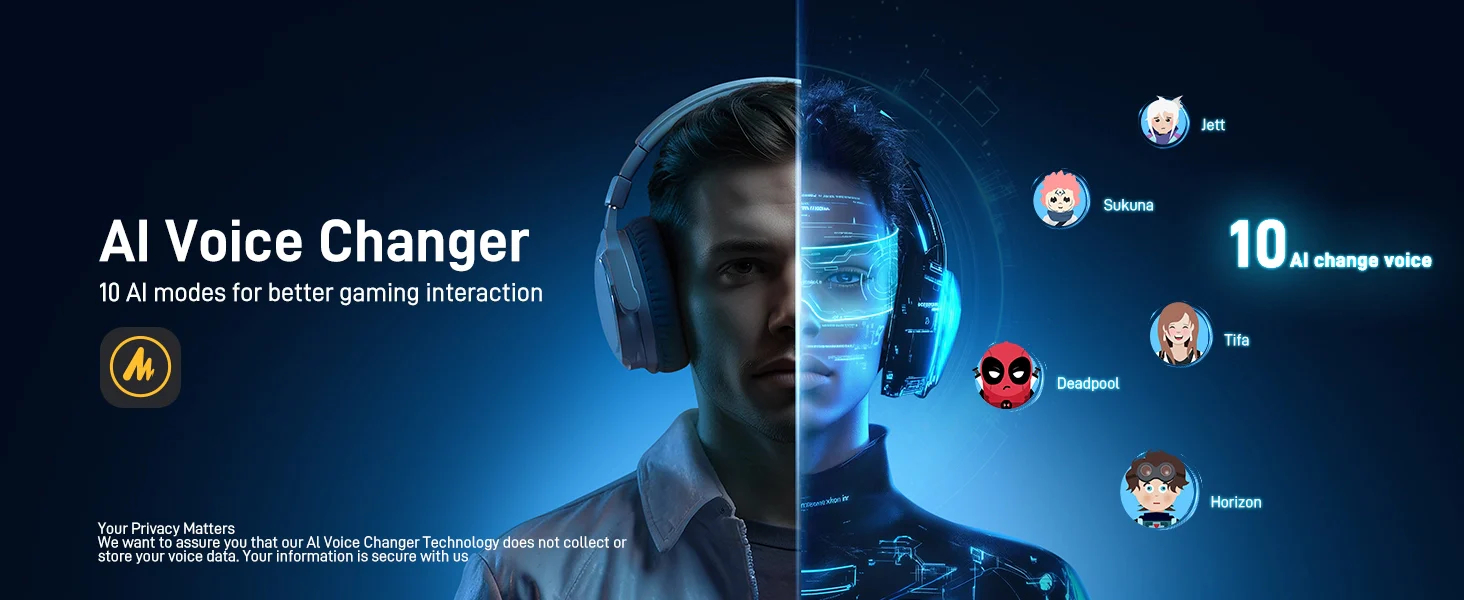 AI Voice Change – 10 fun AI voice effects let you transform your voice into game characters, superheroes, and more. (Please noted that this function is work on PC via Maono Link and is NOT avaliable on Mac)
