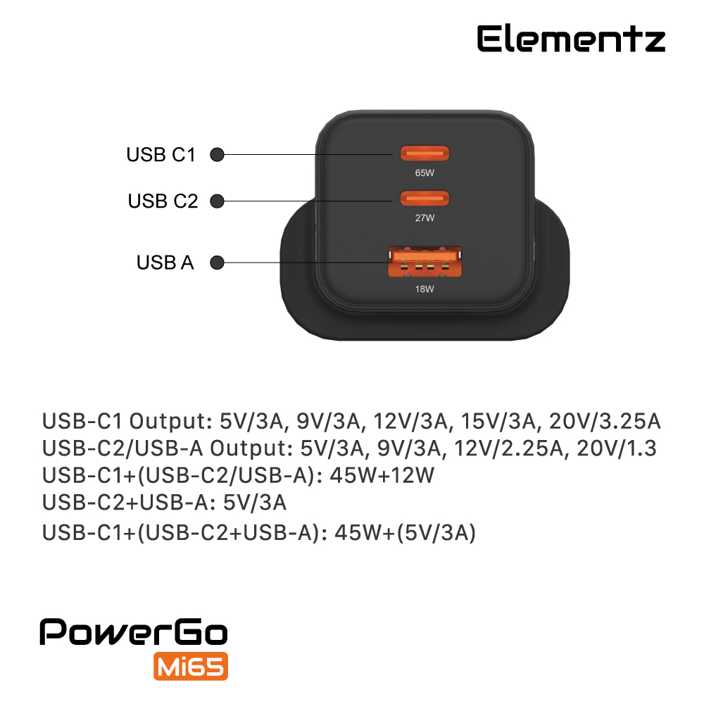 USB-C1 Output: | 5V/3A, 9V/3A, 12V/3A, 15V/3A, 20V/3.25A (65W Max) |