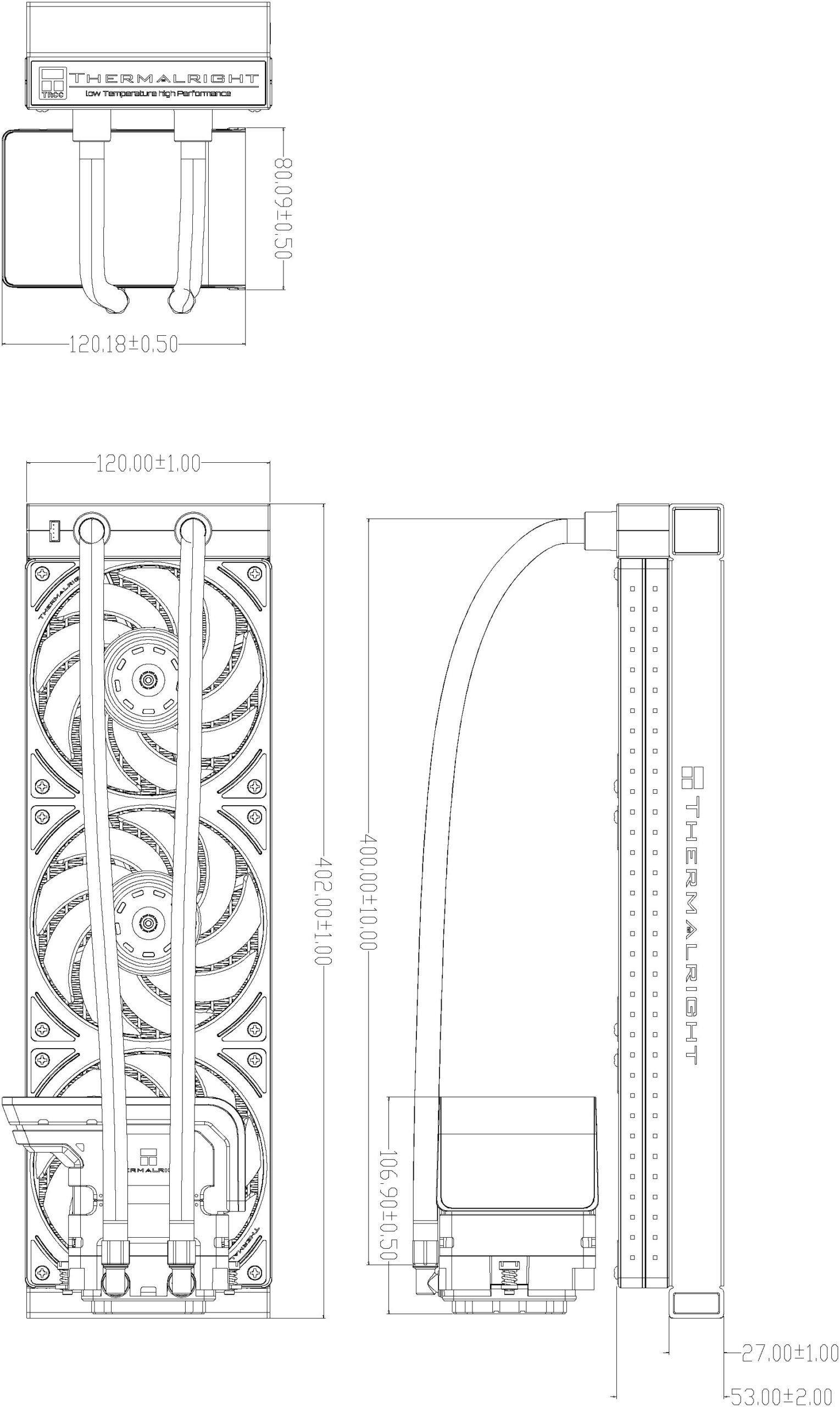 冷排尺寸:L403 mm x W120 mm x H27 mm