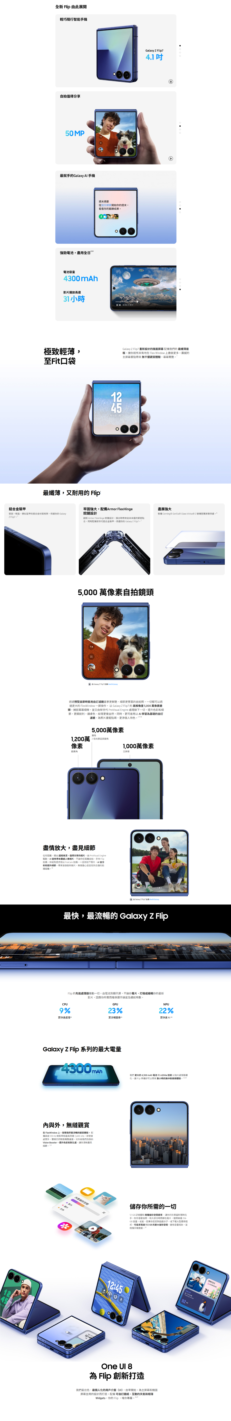 我們更大容量的 4,300 mAh 電池和 mDNIe 技術以強大處理器優化,讓 Flip 準備好可為你帶來數小時的無中斷娛樂體驗。