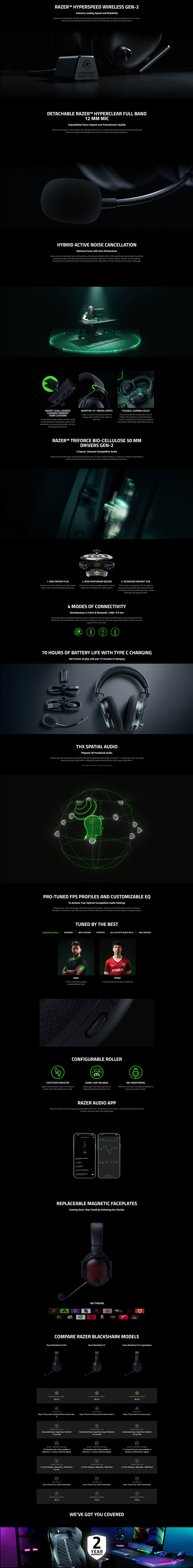 - Razer TriForce 生物纖維素 50 毫米驅動單元(第二代):提供卓越的音頻表現,帶來更豐富的高音、更明亮的聲音以及強勁的低音。