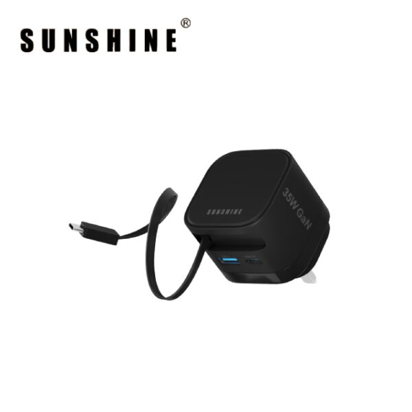- 巧小設計,內置可以伸縮的USB-C快充線 及 1個 USB-C & 1個 USB-A