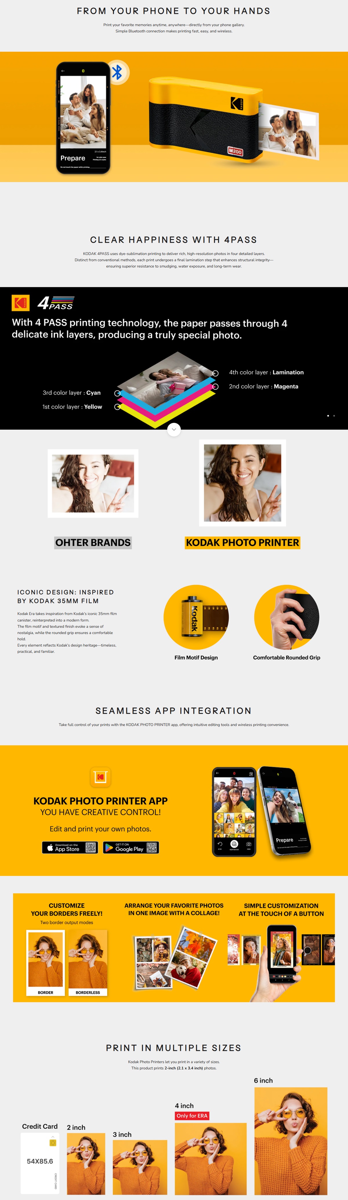 - 一款輕巧的相片印表機,適用於 2.1×3.4 吋信用卡大小相紙。從 KODAK PHOTO PRINTER 應用程式中選擇喜愛的圖片,透過藍牙即可列印。