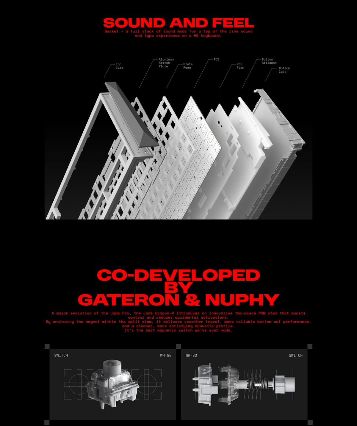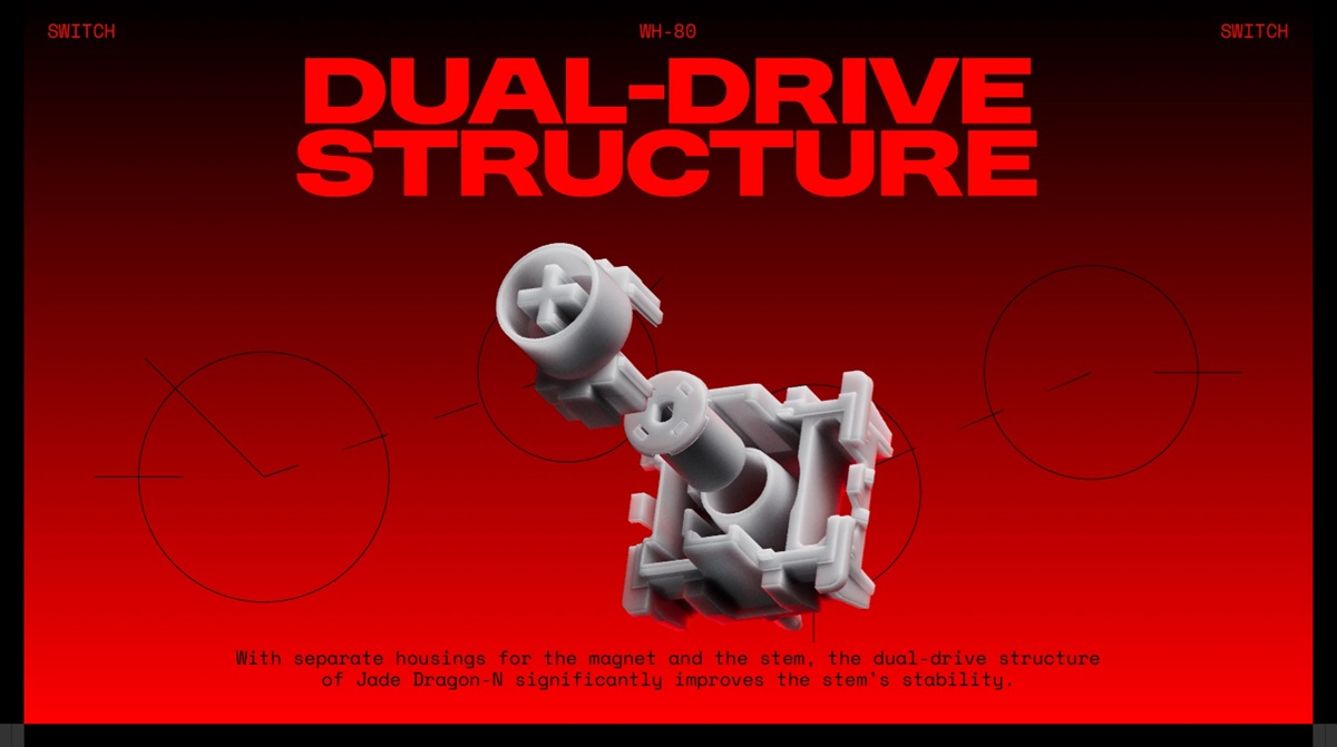 - Gateron X NuPhy 共同研發 - Magnetic Jade Dragon-N Switch,Dual-Drive結構更穩定、敲擊表現更好