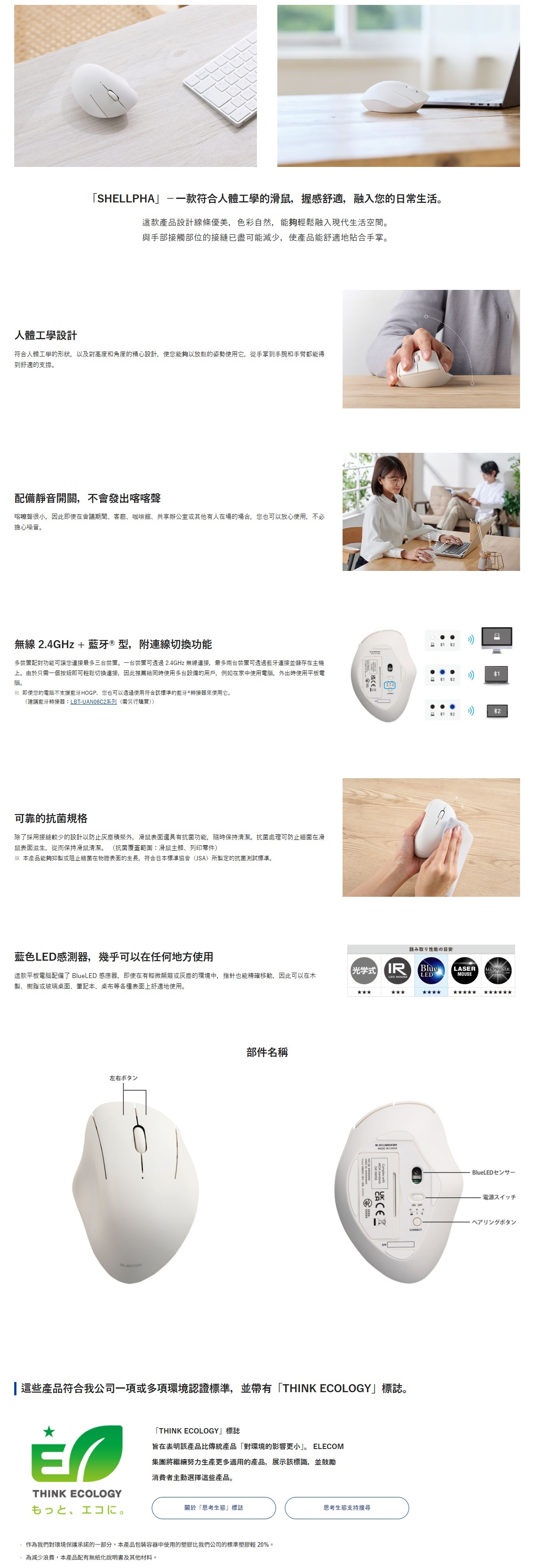 符合人體工學的 2.4GHz + Bluetooth® 無線滑鼠「SHELLPHA」