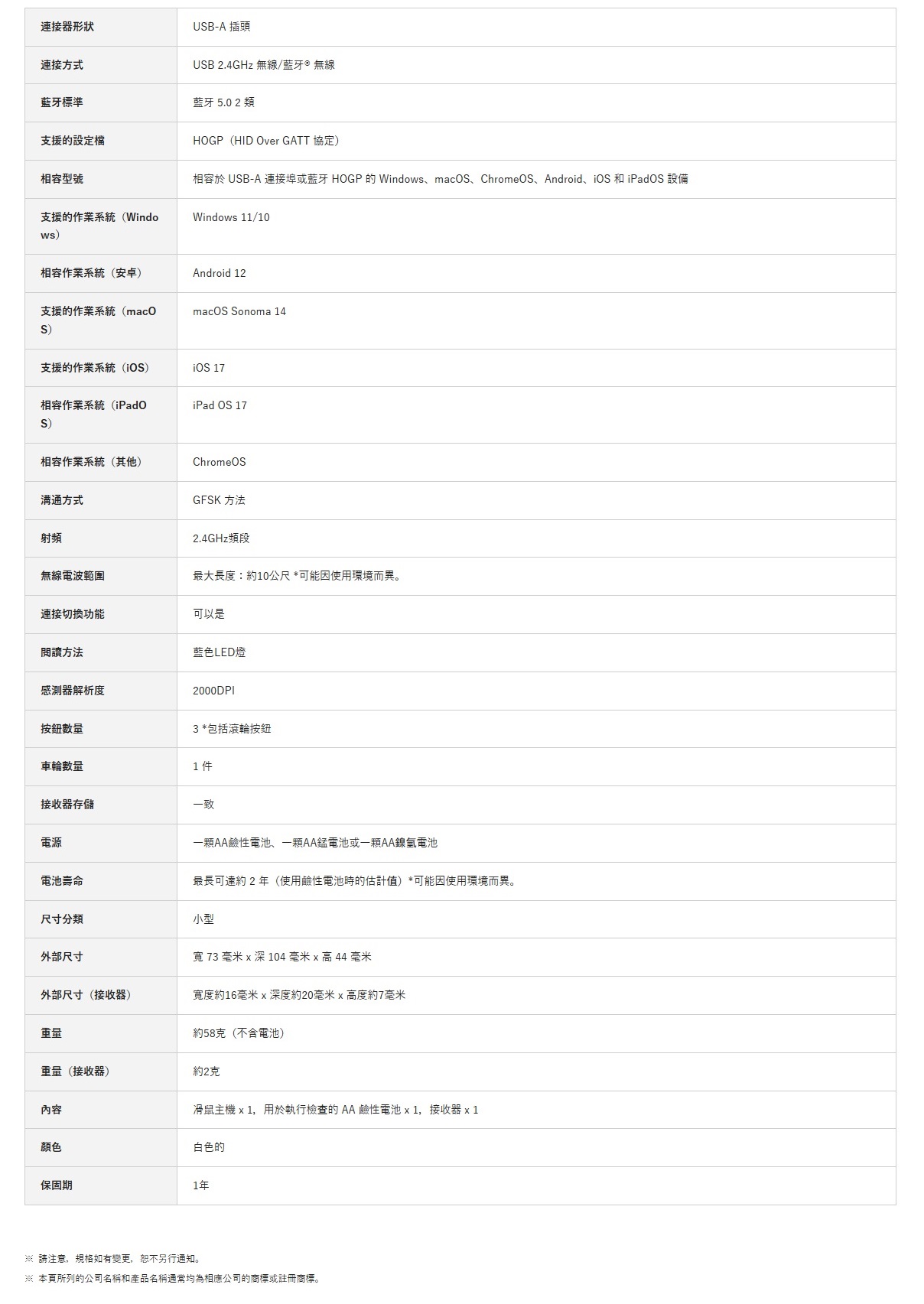 - 支援 USB 2.4GHz 無線與 Bluetooth® 雙模式連線