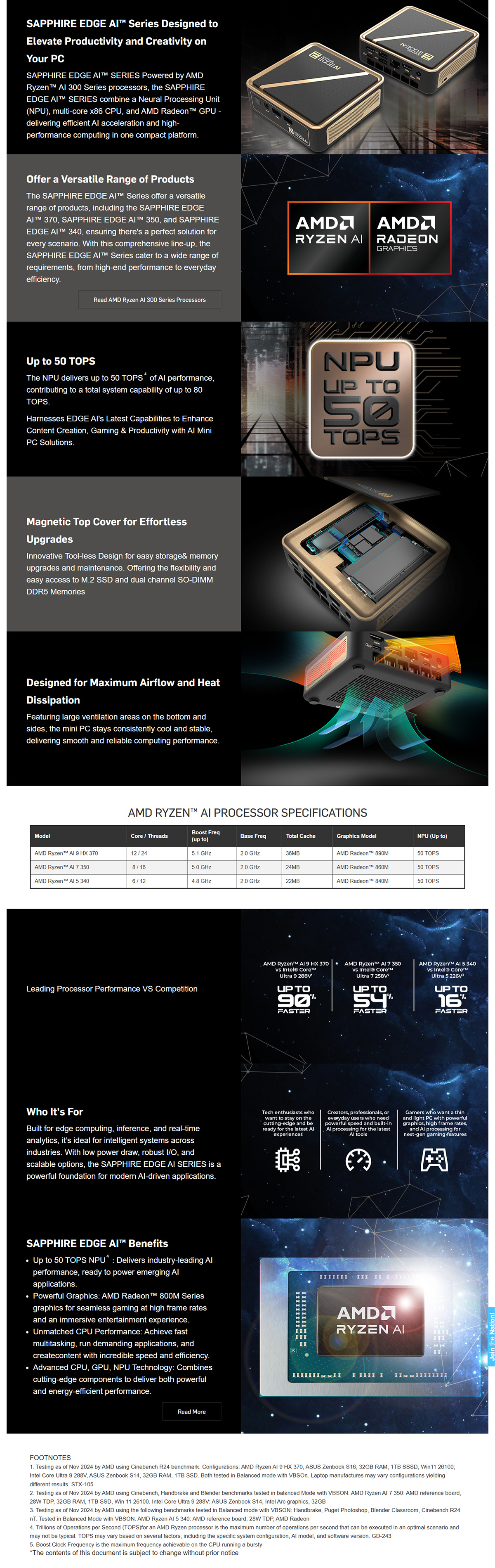 - SAPPHIRE EDGE AI™ 350:AMD Ryzen™ AI 7 350