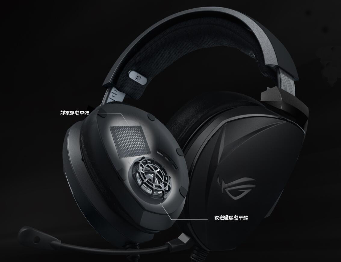 - 世界首款採用靜電單體與釹磁動雙單體架構的電競耳機,能傳遞極度逼真的音質與最佳化低音