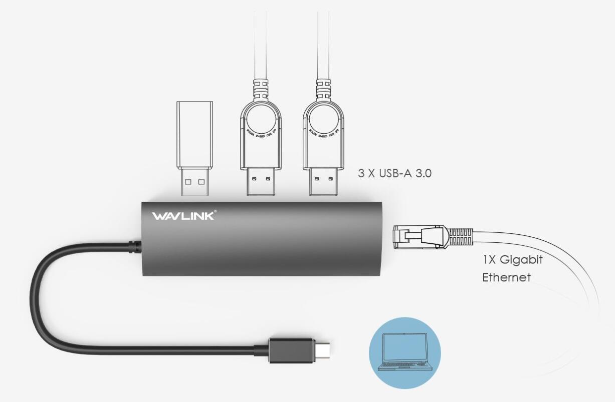 - 2-in-1 USB3.0 3 port and 10/100/1000M self-adjusting Ethernet Adapter.
