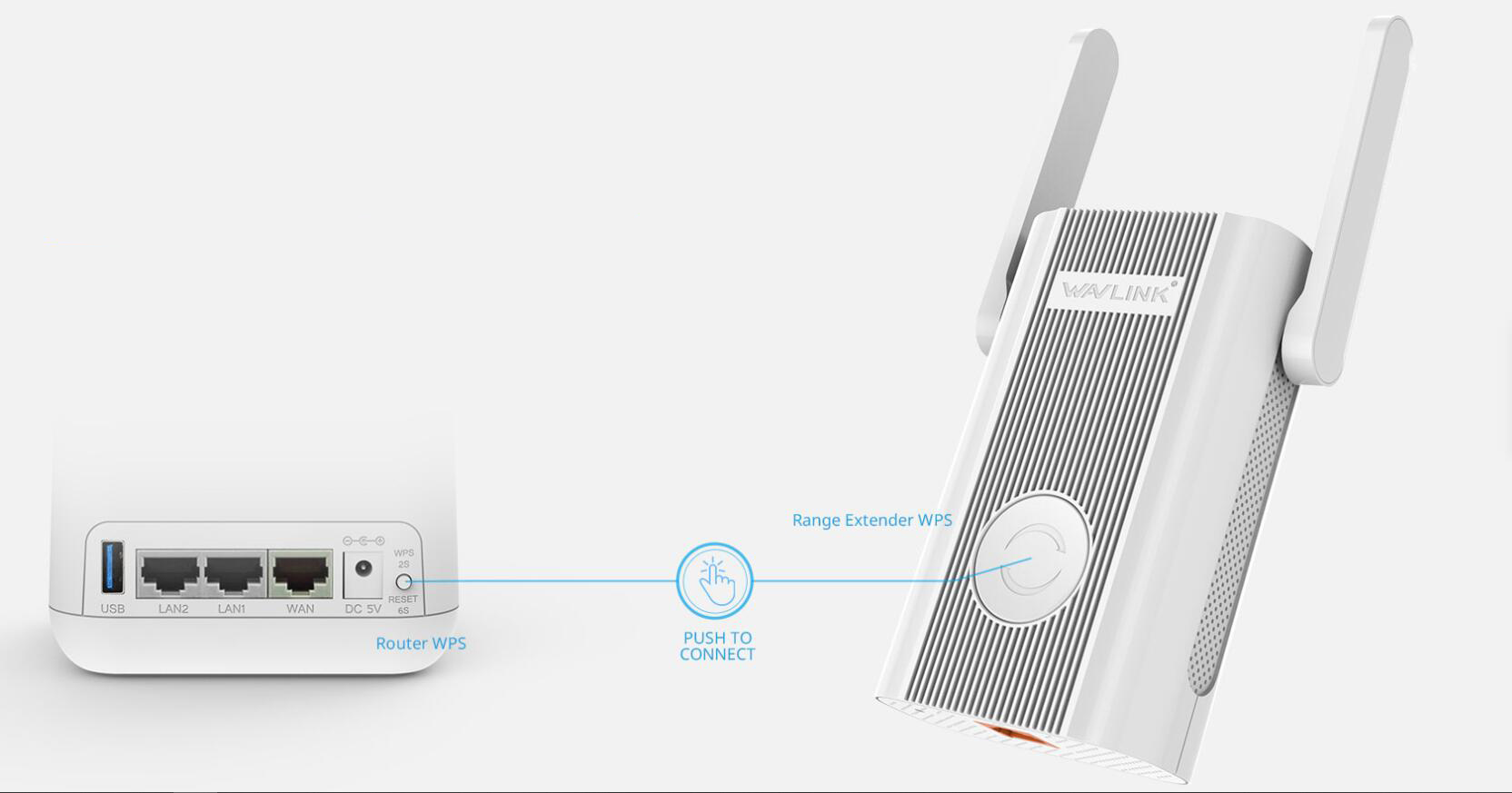 To pair your router with 575A4, you only need to simply press the WPS buttons on both of them, then the extender and your router will be connected instantly.