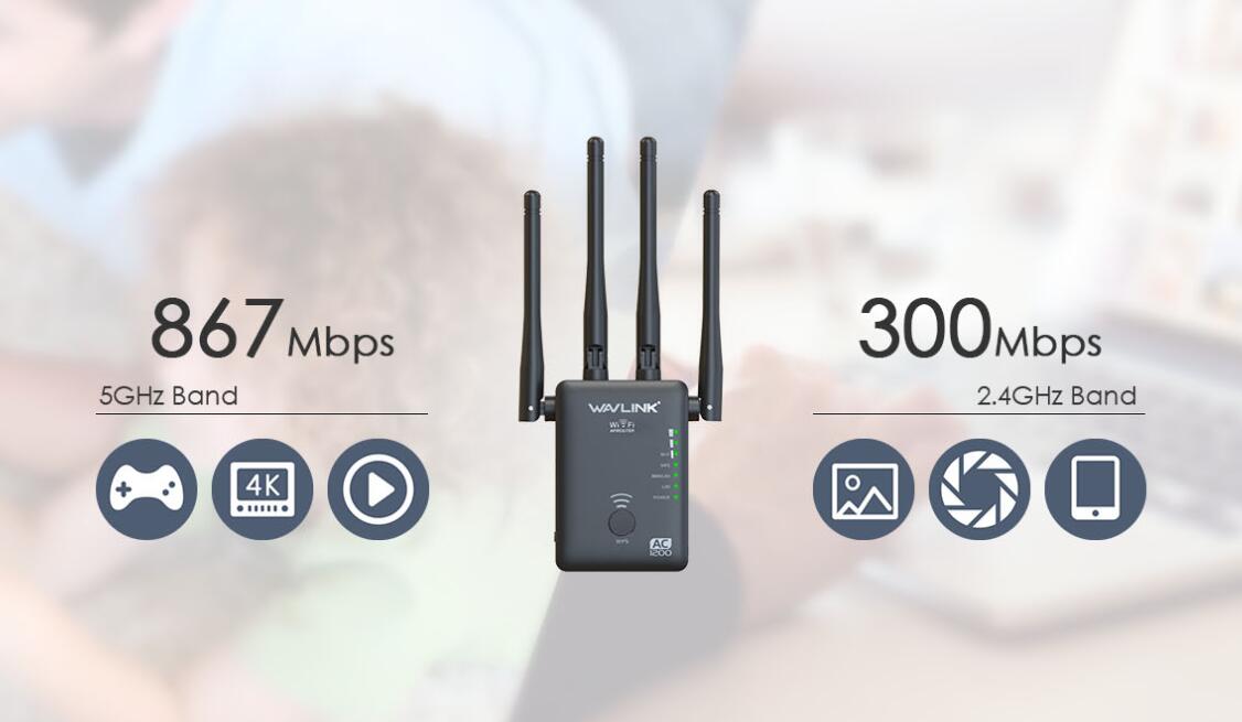802.11AC,the next generation of Wi-Fi, 3 times faster than 802.11n. Simultaneous 5G 867Mbps and 2.4G 300Mbps connections allow more connected.