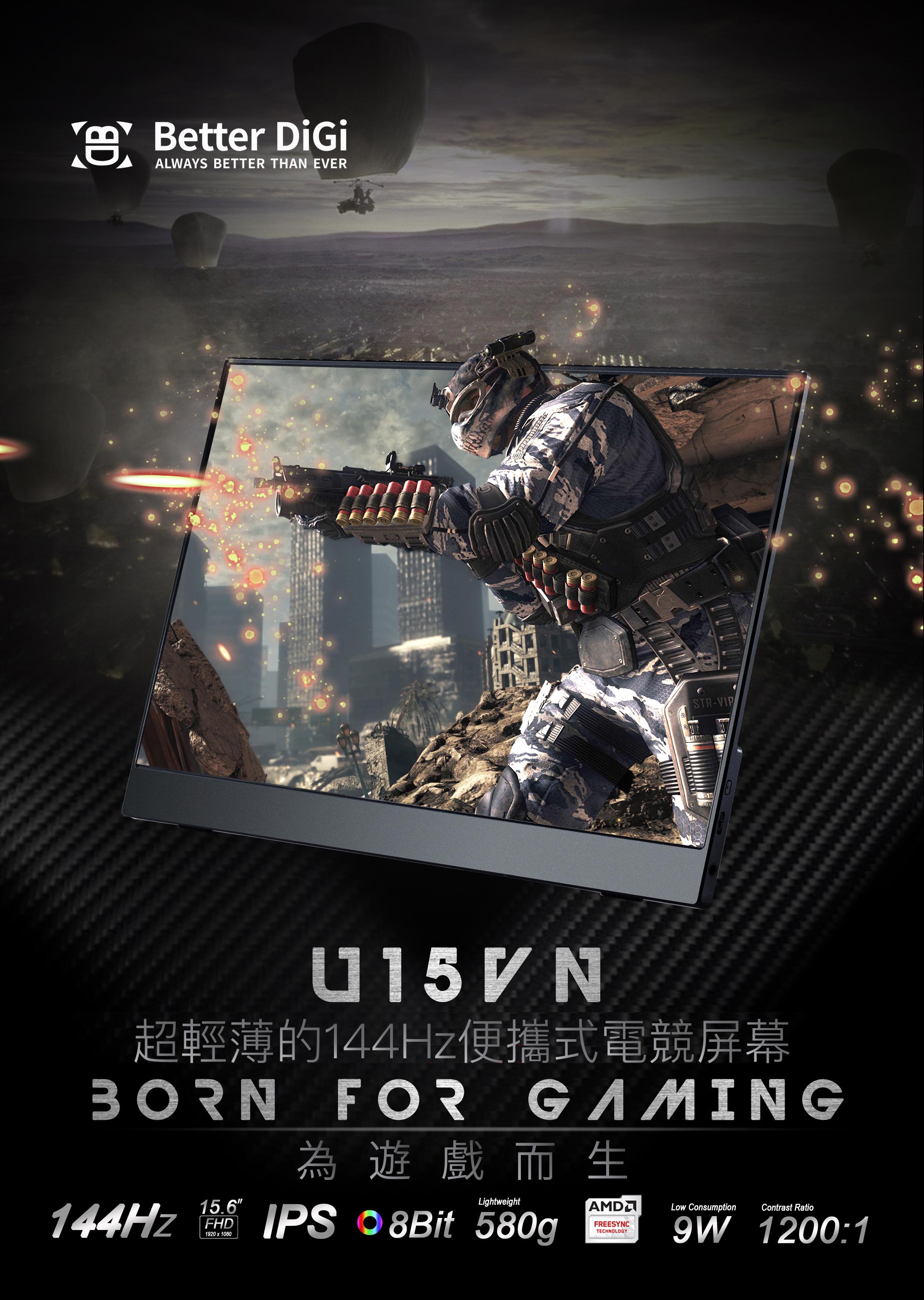 特別功能1: 高規格FHD 1080P (1920×1080@144Hz),AMD Free-Sync 8bit color