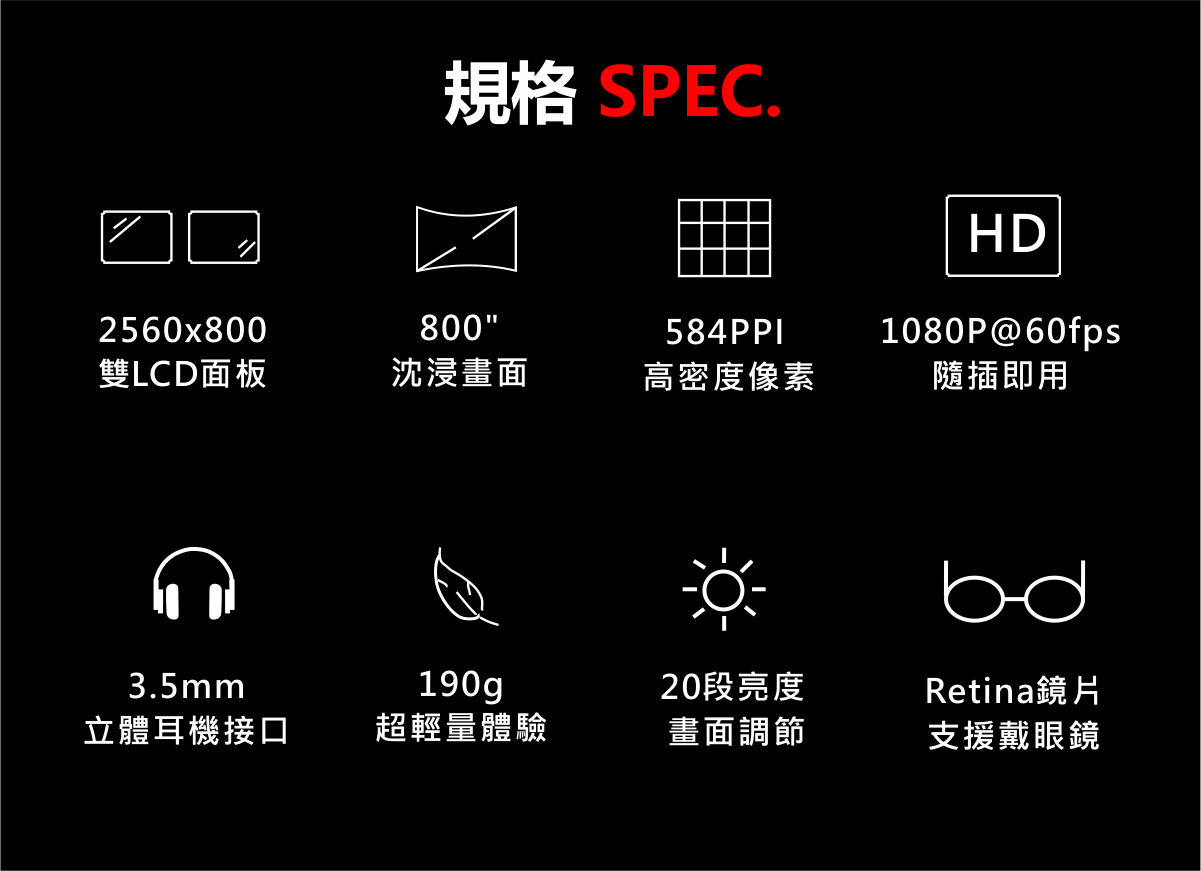 • 沉浸式遮罩.自由切換空間.戴眼鏡也能適用