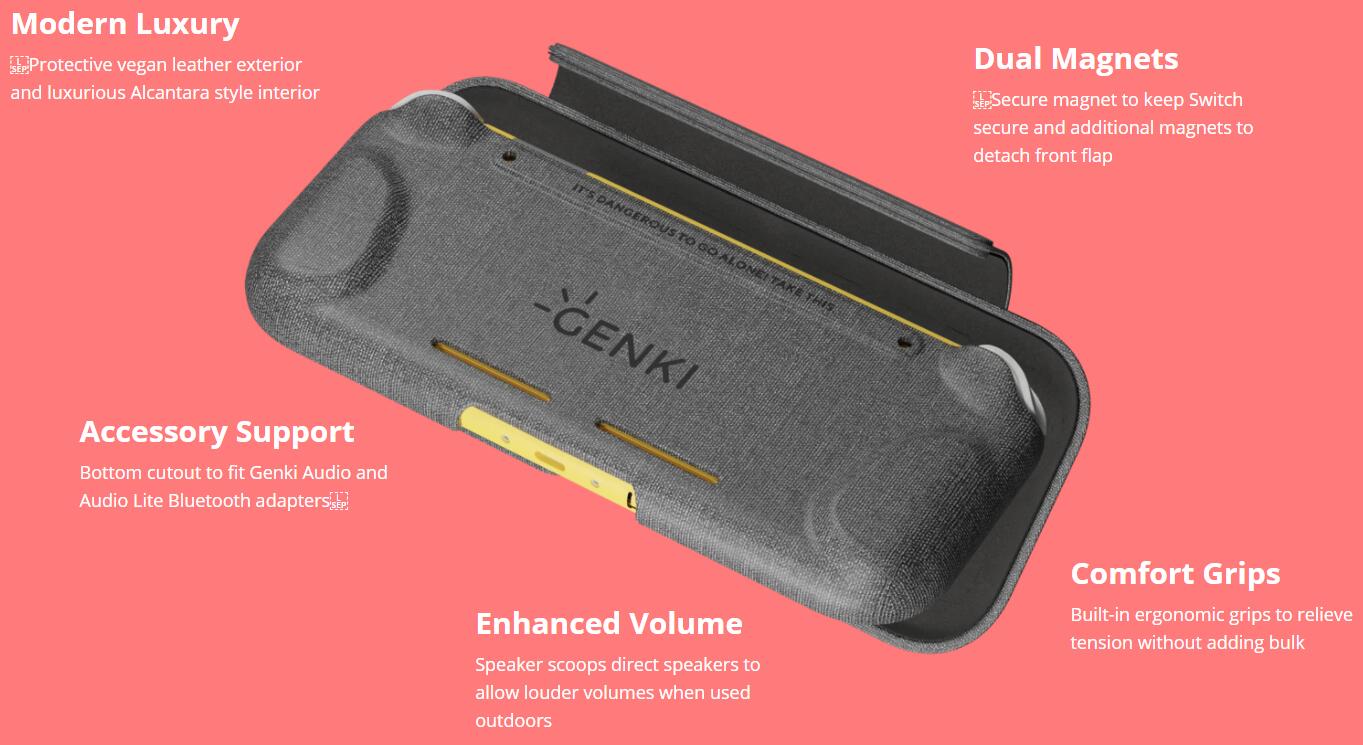 Thoughtful portable protection for your Nintendo Switch Lite. Built tough so you can throw your Switch Lite into your bag without a second thought of Joy-con drift. Magnetic clasps hold the clamshell design securely and another set of magnets allows you to quickly attach/detach the back cover like a superhero cape.