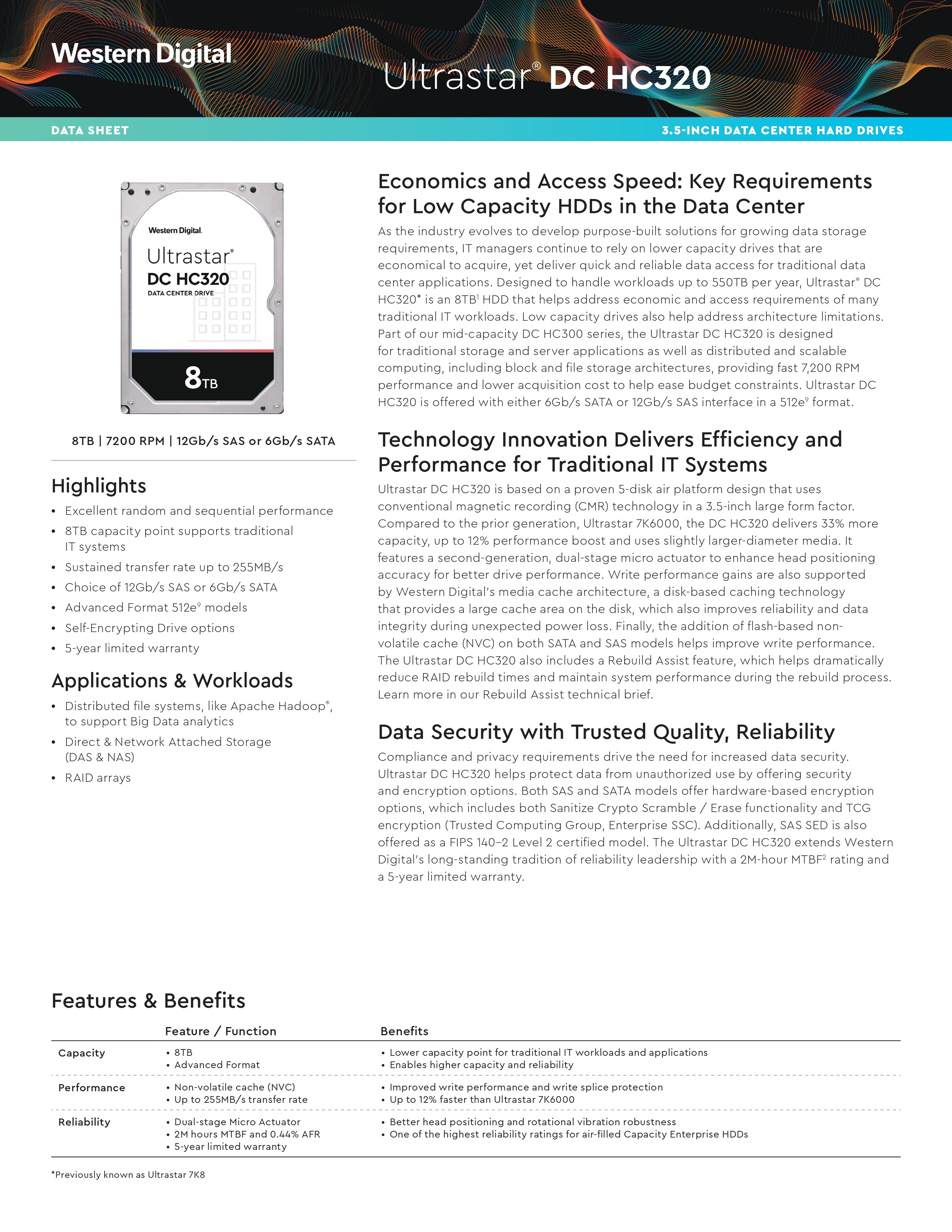 Western Digital Ultrastar DC HC320 3.5-inch 7200rpm SATA3 Enterprise HDD 8TB (HUS728T8TALE6L4)(8TB)