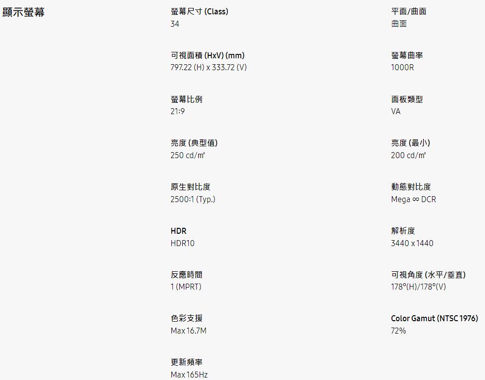 - Ultra WQHD (3440 x 1440) 解析度,極致更全面