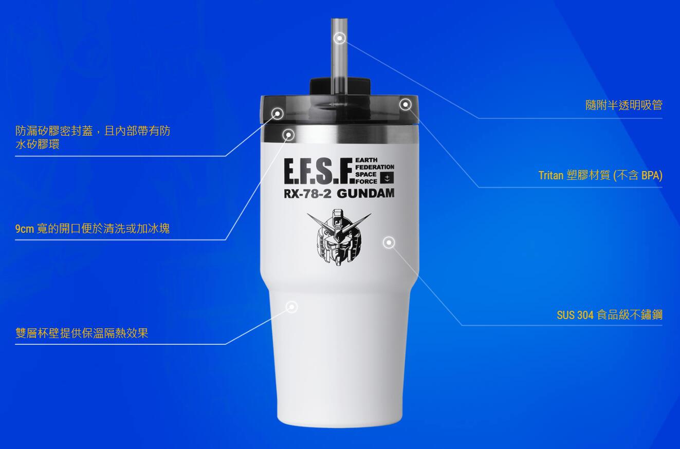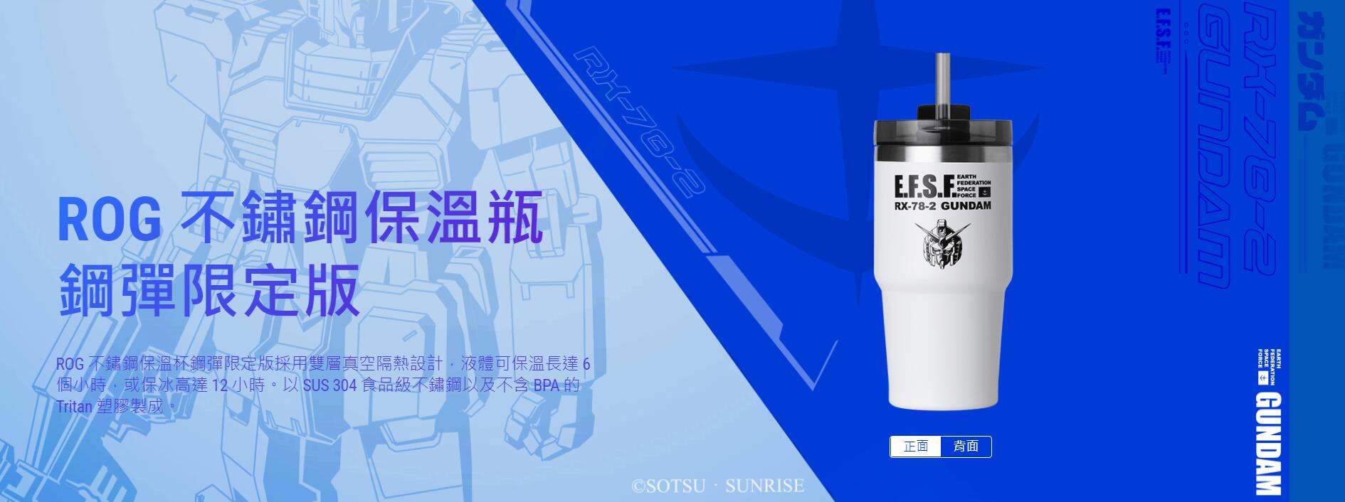 ROG 不鏽鋼保溫杯鋼彈限定版採用雙層真空隔熱設計,液體可保溫長達 6 個小時,或保冰高達 12 小時。以 SUS 304 食品級不鏽鋼以及不含 BPA 的 Tritan 塑膠製成。