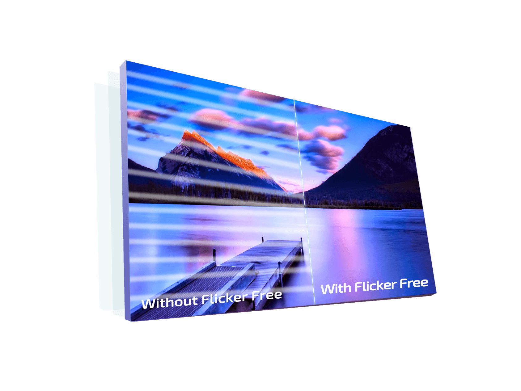 多數LED螢幕使用 PWM (Pulse Width Modulation)脈衝寬度調變技術調光以掌控亮度,但此脈衝技術易產生閃爍情況,尤其在昏暗微光環境中,更易造成頭疼和眼睛疲勞損傷等不舒適狀況。不閃屏技術則是用運順暢的DC直流背光系統,藉由強化電壓以降低閃爍頻率,提供消費者更健康護眼的使用情境。
