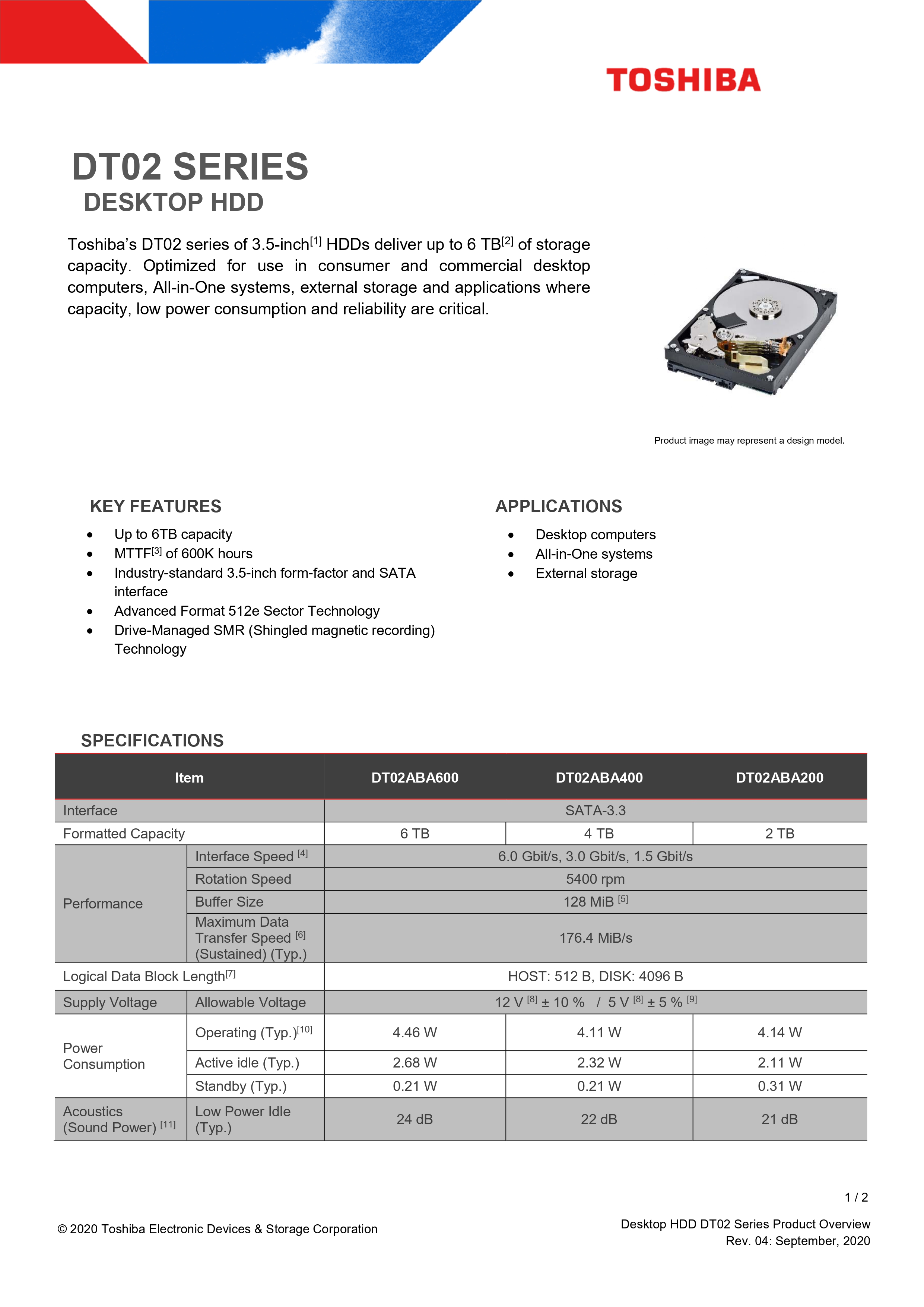 Toshiba 3.5 Internal HDD 4TB /5400rpm/Cache 128MB(DT02ABA400)