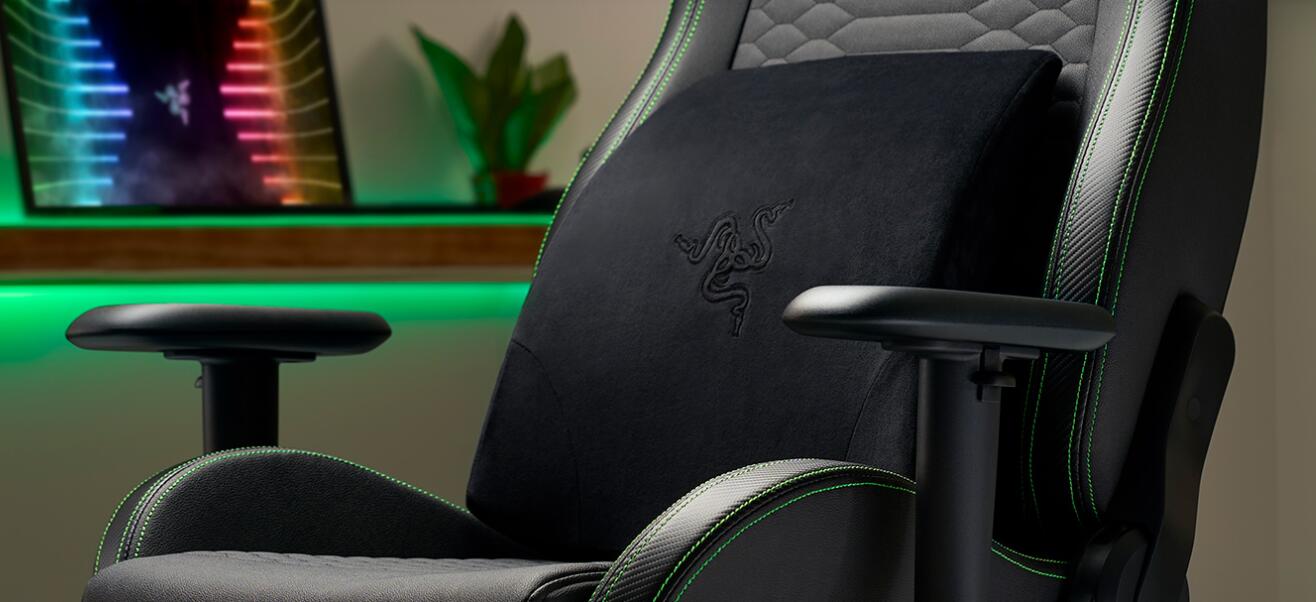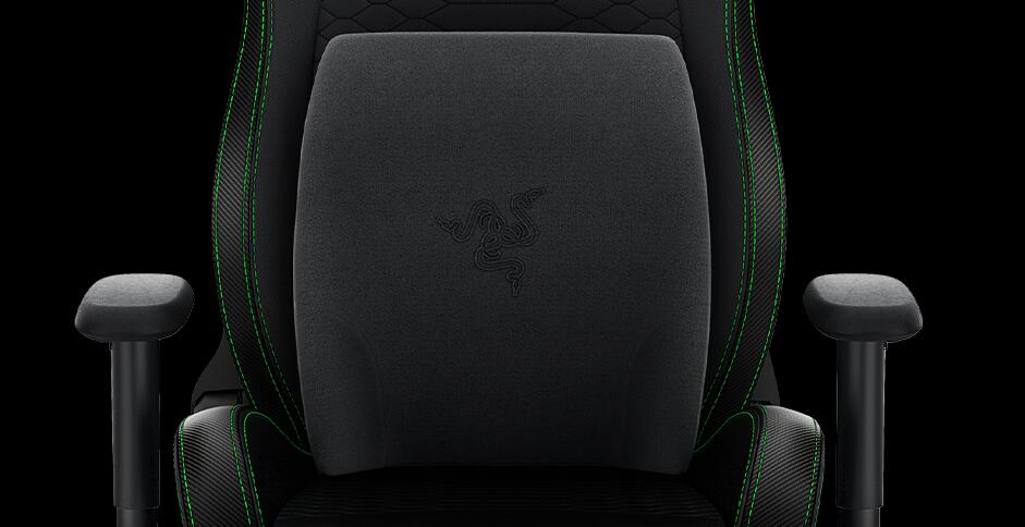 利用 Razer 腰墊,讓你的座椅具備完美的人體工學。在柔軟黑色天鵝絨內包裹了厚實記憶泡綿軟墊,以精心雕塑的腰墊曲線完美支撐你的腰部,讓你的脊椎不會歪斜。在支撐力與舒適度間取得了恰到好處的平衡,帶給你無懈可擊的乘坐體驗。