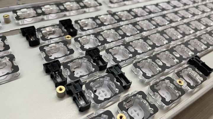 - 2u and spacebar stabs will soft land to PCB when this gasket added.