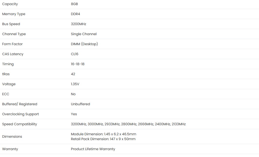 PNY XLR8 GAMING 8GB*2 DDR4-3200Mhz CL16 White(MD16GK2D4320016XSRGB)