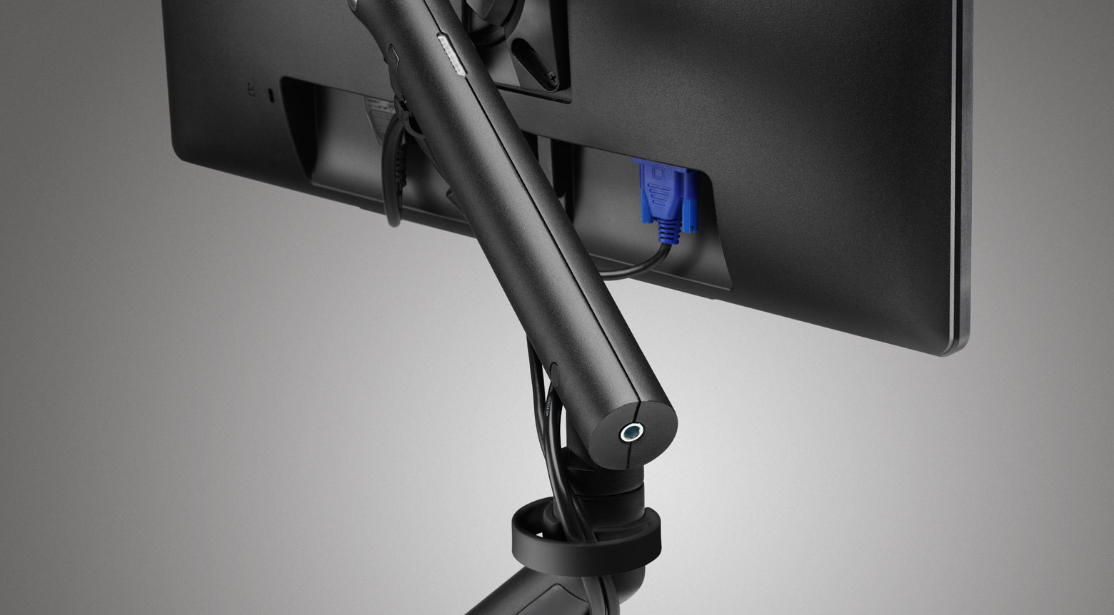 Integrated 3-point cable management system helps create a neat and tidy workstation