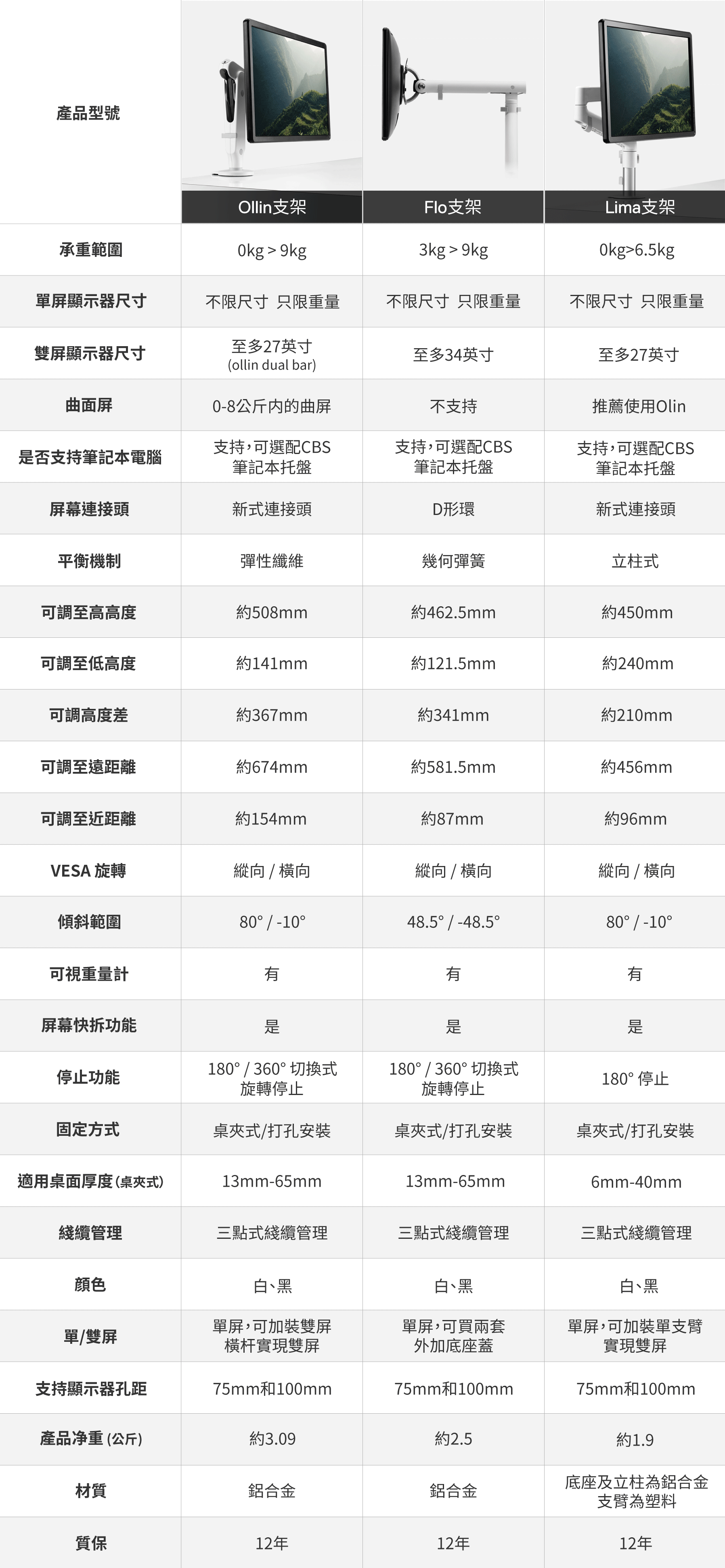 Colebrook Bosson Saunders Lima Monitor Arm 顯示器支架連桌面夾(Black)