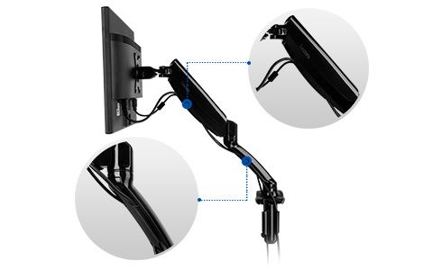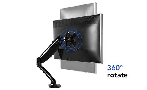 The flexible monitor mount arm rotates a complete 360 degrees, allowing you to convert your display orientation from landscape to portrait for web design and coding projects.
