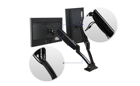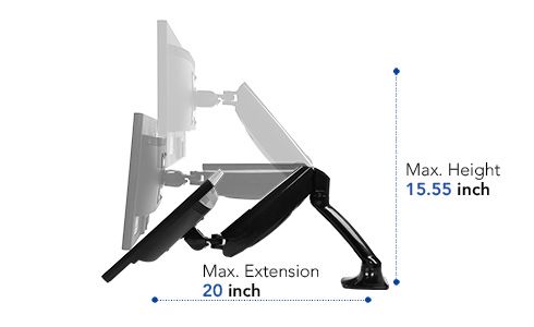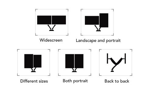 With two monitor arms at your disposal, you have complete freedom to configure your monitors. Place your displays side-by-side, spaced evenly apart, back-to-back, top-to-bottom or anywhere in between. The monitor mount also allows rotation from landscape to portrait orientation for viewing longer pages or blocks of code without scrolling.