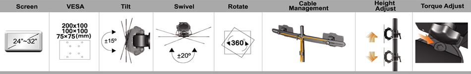 - ■ 可多重調整,包含高度與360度螢幕旋轉