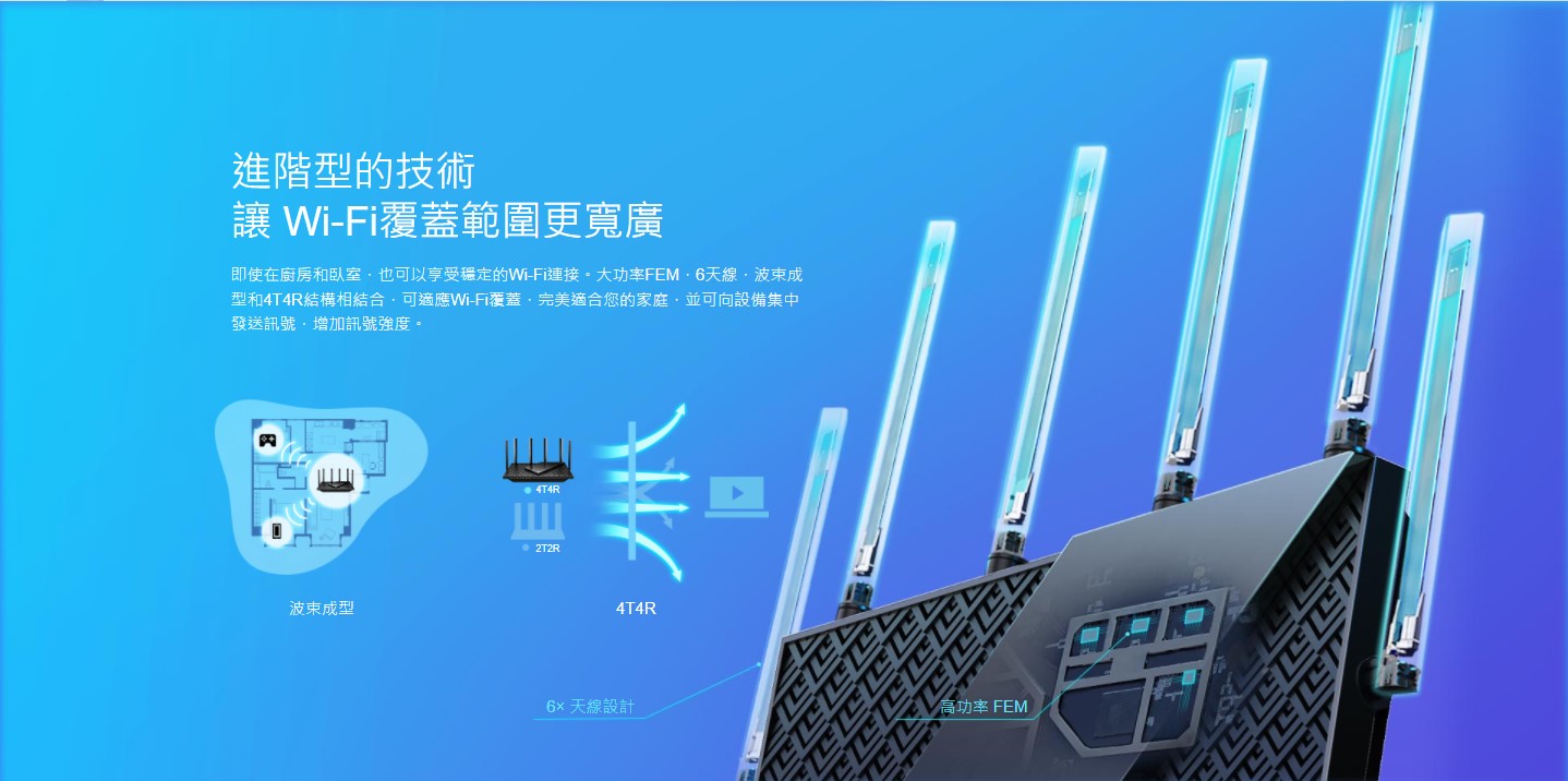 - 更廣泛的覆蓋範圍 – 6根天線設計加上波束成形技術可確保訊號覆蓋範圍.