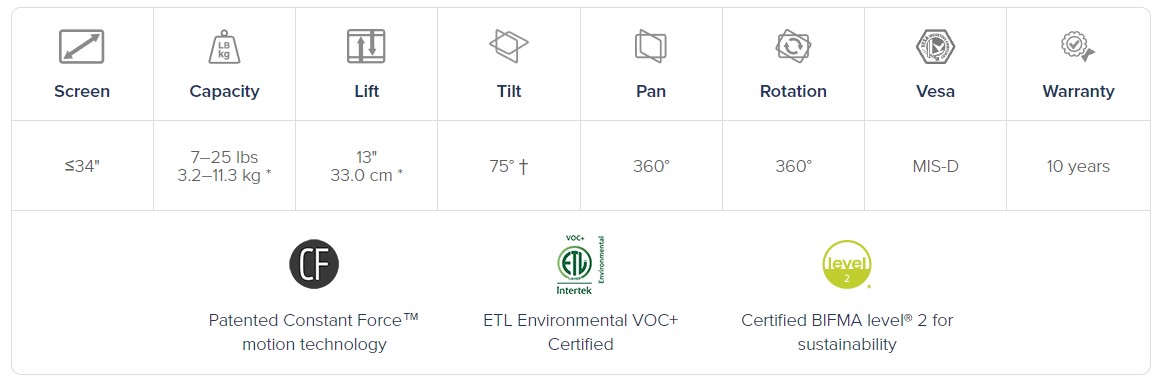 - * Weight Capacity:two arms: 7–22 lbs (3.2–10 kg) each;