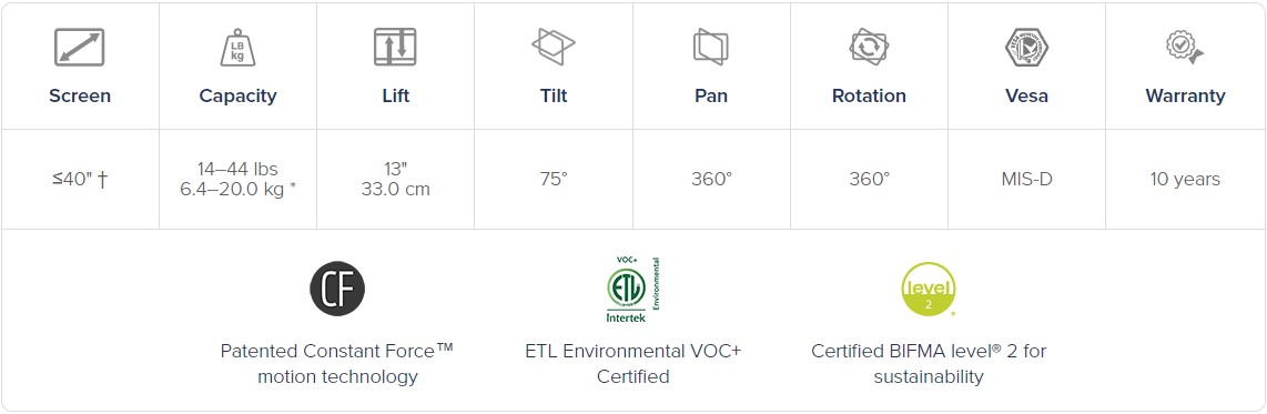 Includes two LX arms and extensions, 23" pole, heavy-duty two-piece desk clamp base with dual screws, two pole collars, two caps, grommet mount plate and hardware, monitor mounting hardware